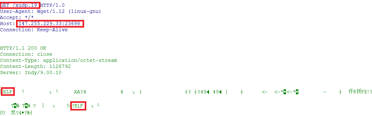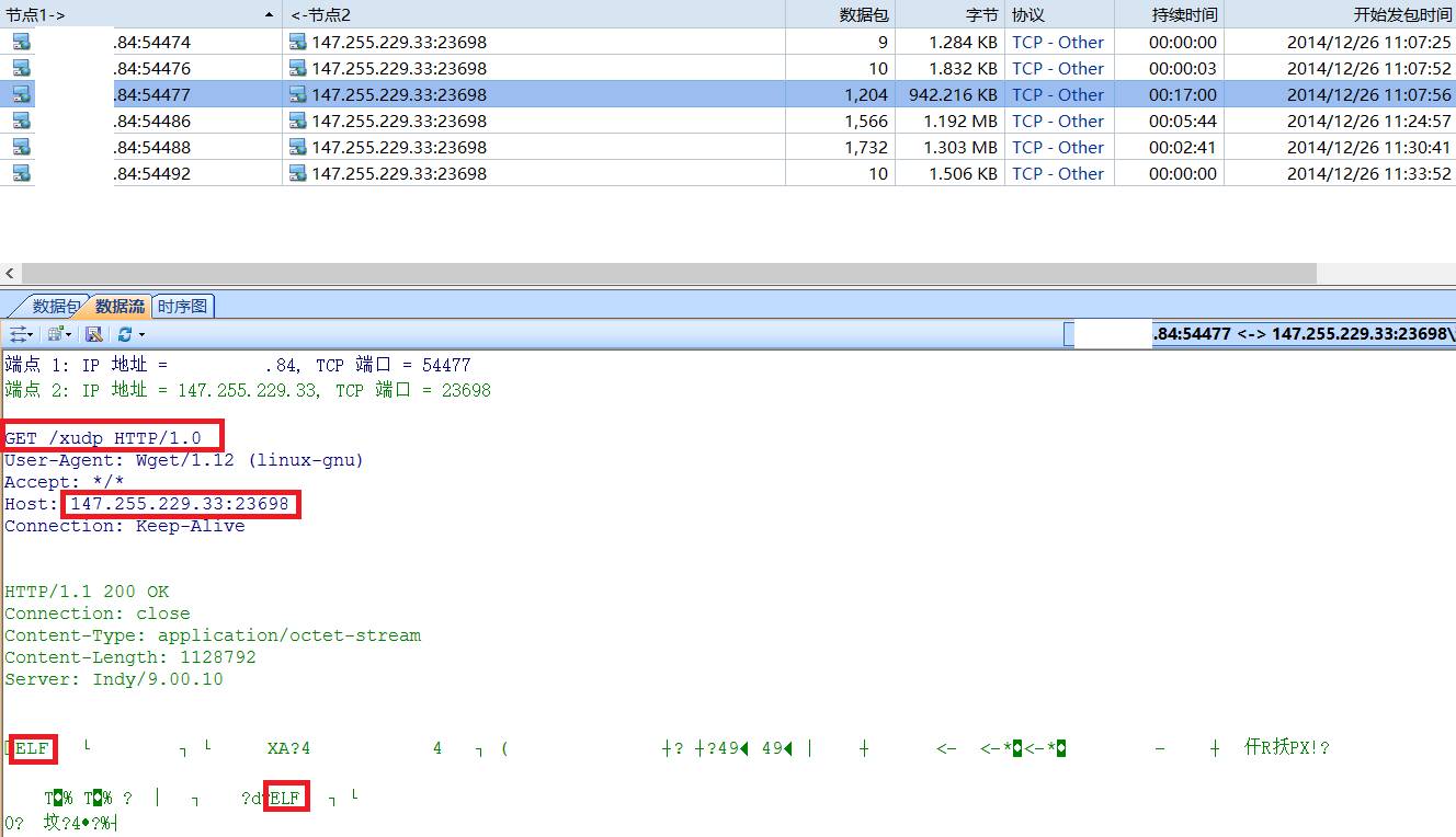 下面的两个会话分别是对xudp和xudp.19的下载,上图中可以看出xudp和xudp.19均为linux可执行文件ELF。