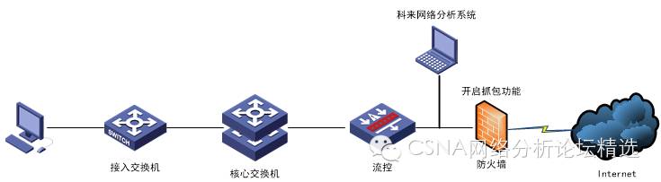 从结构图上可以看出,用户在进行互联网Web访问时,除经过接入层交换机和核心交换机外,中间还经过了一个流控设备和一个防火墙。
