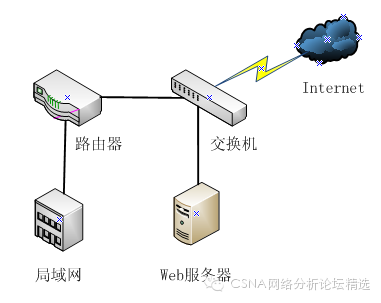 用户的Internet出口基本网络拓扑如上图所示,其中出口带宽为1M,内部上网和对外服务的Web服务器共享该带宽。服务器IP地址为xx.xx.142.202
