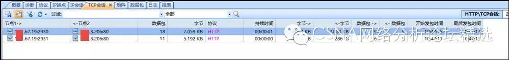 2. 在这段时间内,两台服务器之间存在2个HTTP协议的会话(如下图)。