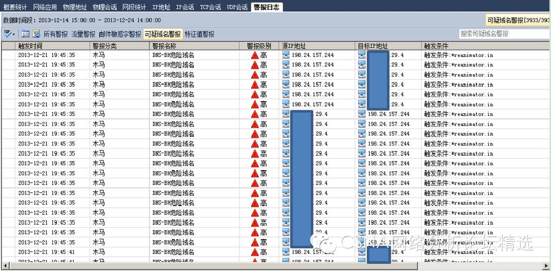 XX.XX.29.4为客户的DNS服务器上海某单位的DNS服务器,需要对外提供DNS服务。该客户部署科来网络回溯分析系统后,在可疑域名警报中触发了大量警报。