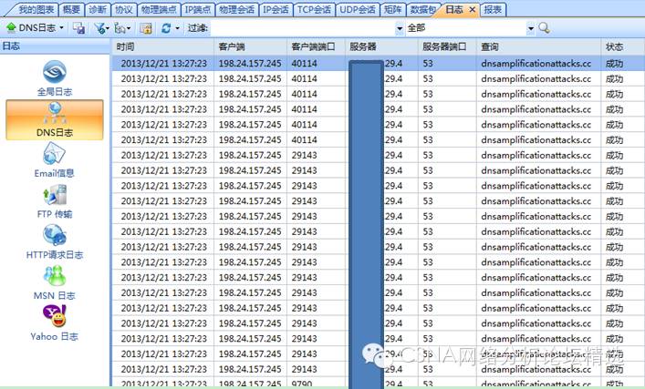 发现198.24.157.245(经查为美国IP)在短时间内向XX.XX.29.4服务器发送了大量的DNS请求,请求的域名为dnsamplicationattacks.cc。(DNS AmplificationAttacks字面意思就是DNS放大攻击。)
